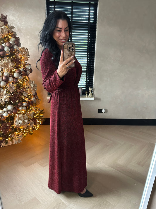 UitverkochtJolie Dress Short Sleeve Burgundy