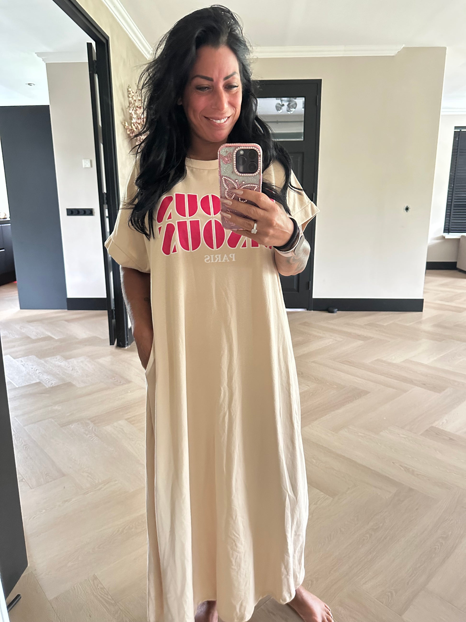 BISOUS! Deze heerlijke jurk is er in meerdere kleuren, is mega zacht en heeft 2 zakken!