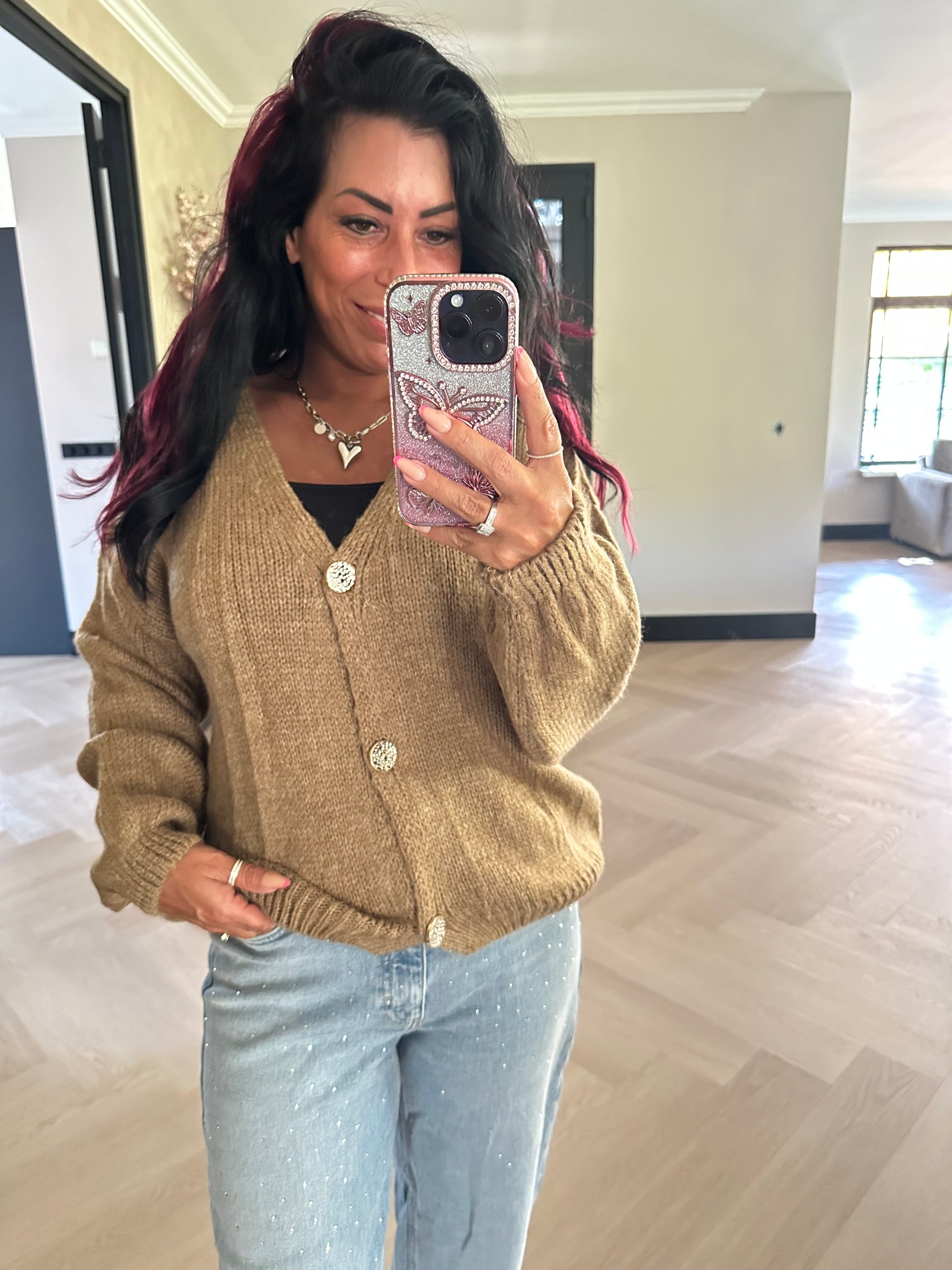 Daisy Vest Gold Button Camel