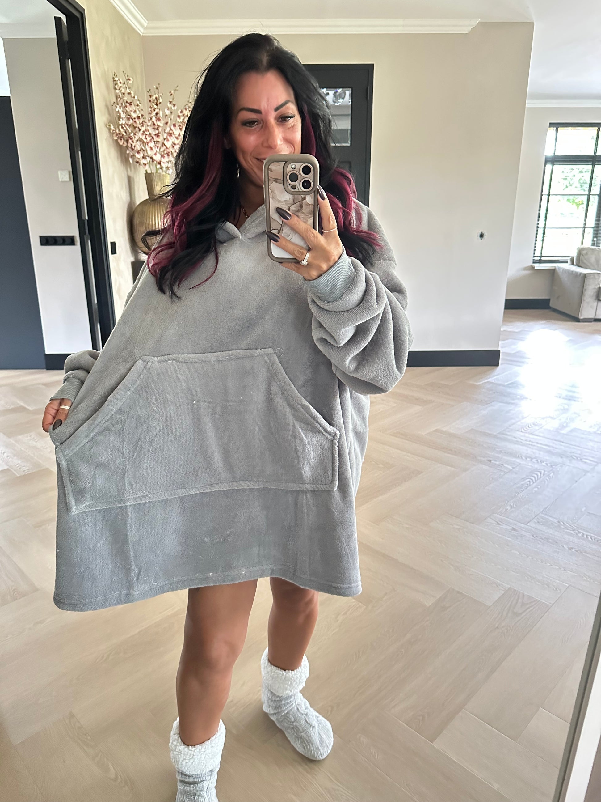 Hoodie en Deken in 1!! Deze heerlijke zachte knuffel hoodie is niet alleen geschikt om lekker op de bank te liggen, maar je kunt er dus ook gewoon in rondlopen!! De Binnenkant is voorzien van Sherpa Fleece, dus extra dik.